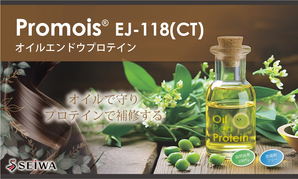 Promois® EJ-118(CT)は、加水分解エンドウタンパクにイソステアリン酸を結合させて生まれた油に溶解性を示すオイルエンドウプロテインです。100%植物由来の機能性オイル成分で、ダメージを受けた毛髪の強度を高め、ツヤ、滑らかさ、まとまりやすさを向上させます。