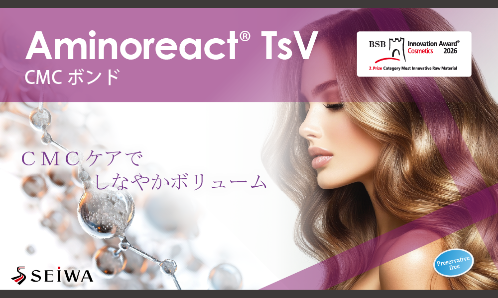 化粧品原料と最終製品の国際的なアワード“BSB Innovation Award 2026”にて「Aminoreact®(アミノリアクト) TsV」がthe “Hair Care” section of the “Actives – Cosmetic Raw Materials” 部門で2位を受賞しました。